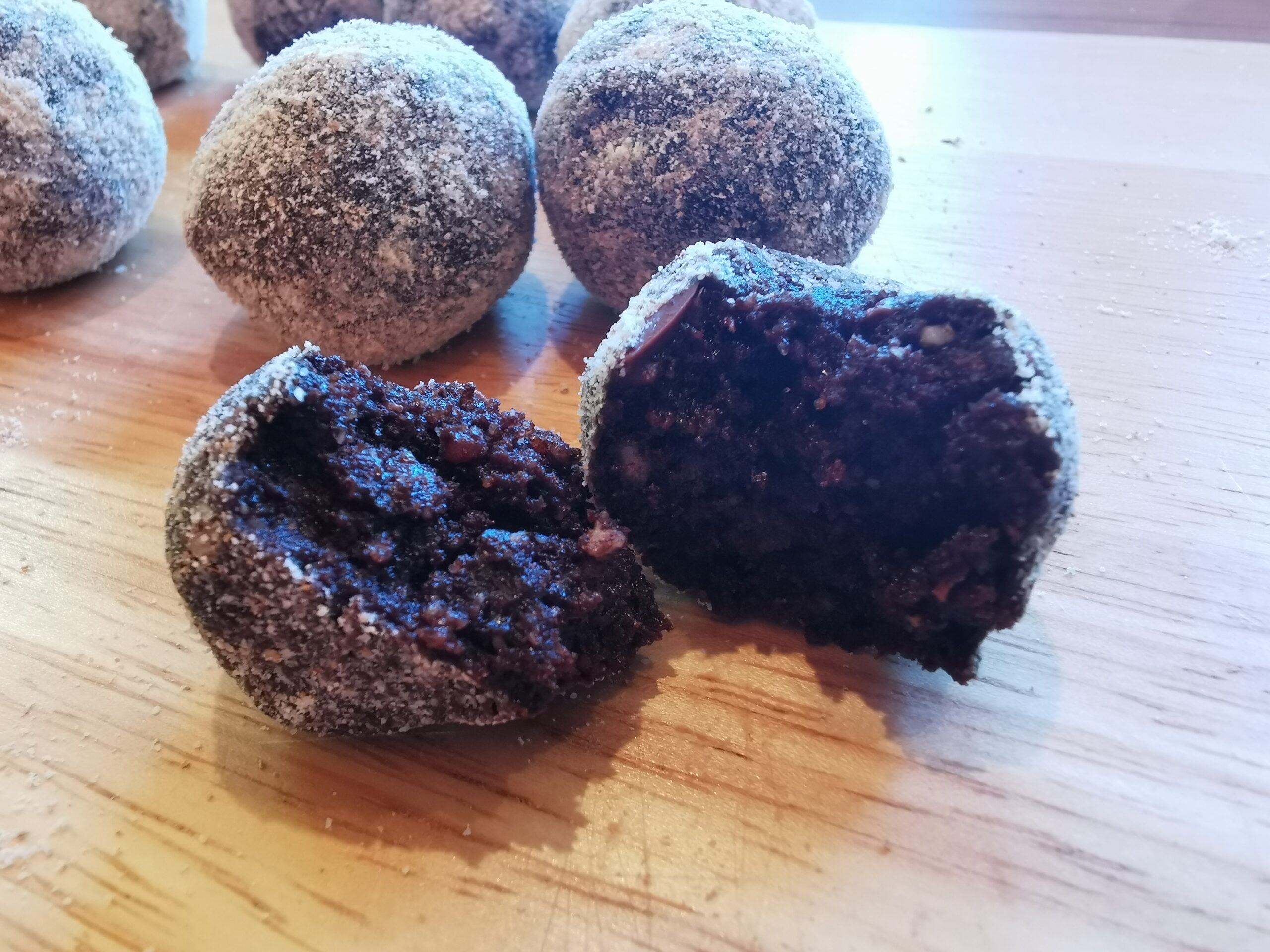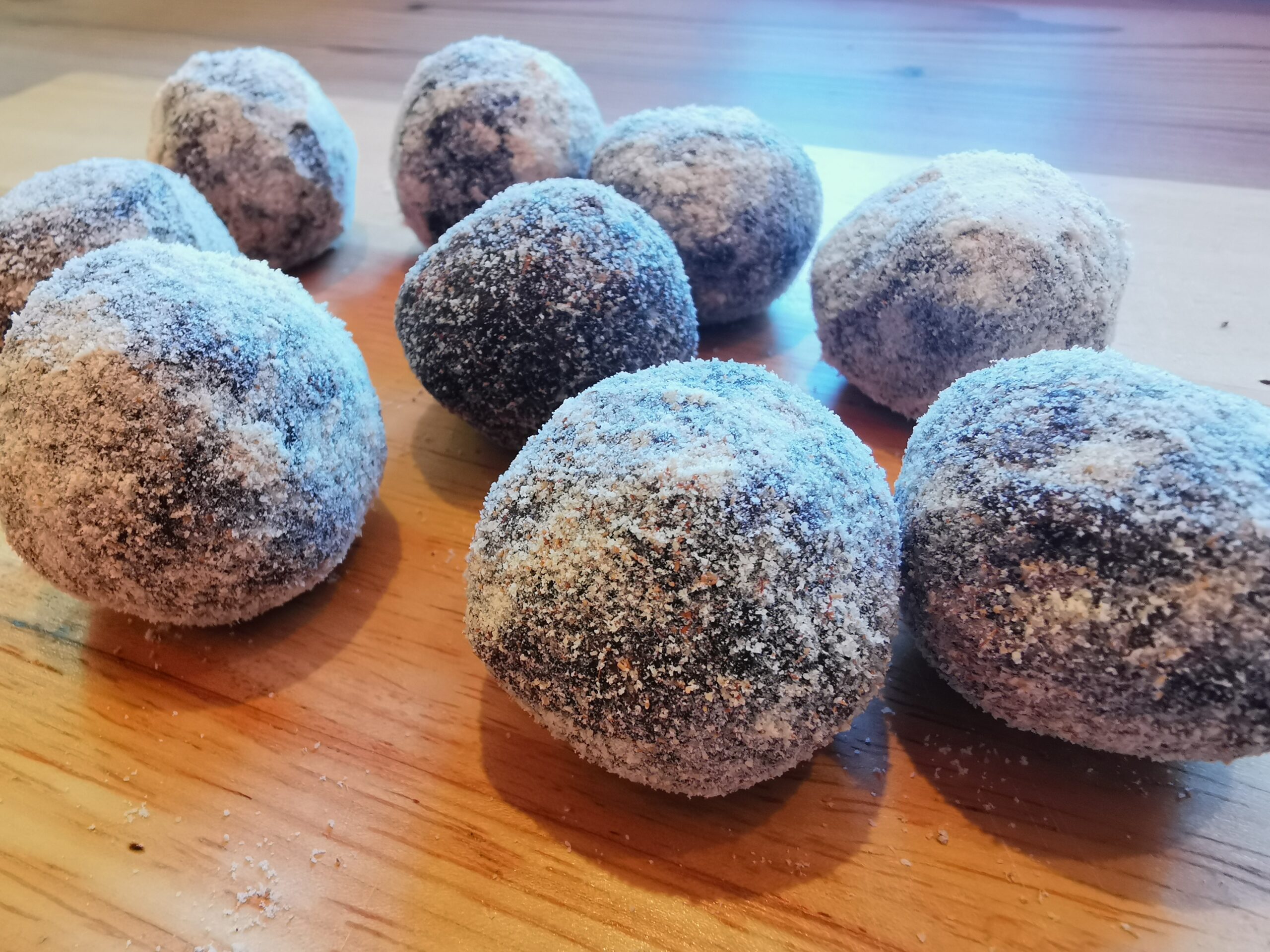 - Kokosraspeln oder Erdmandelmehl zum Wälzen der Kugeln