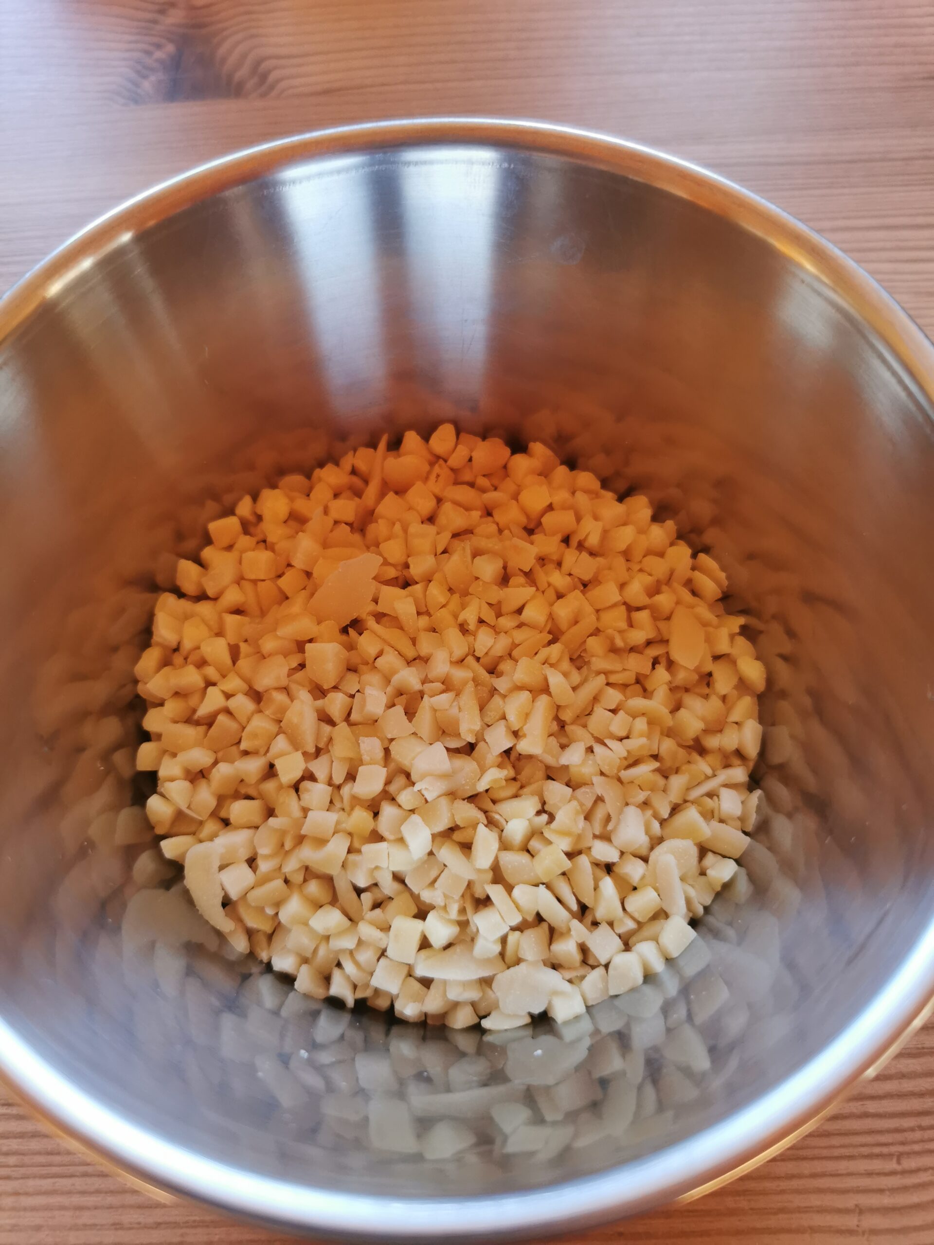 - Mandeln zerkleinern: Gib die Mandeln in einen leistungsstarken Mixer oder eine Küchenmaschine und mahle sie, bis sie fein zerkleinert sind. Ein paar kleine Stücke für mehr Biss dürfen gerne übrig bleiben.
